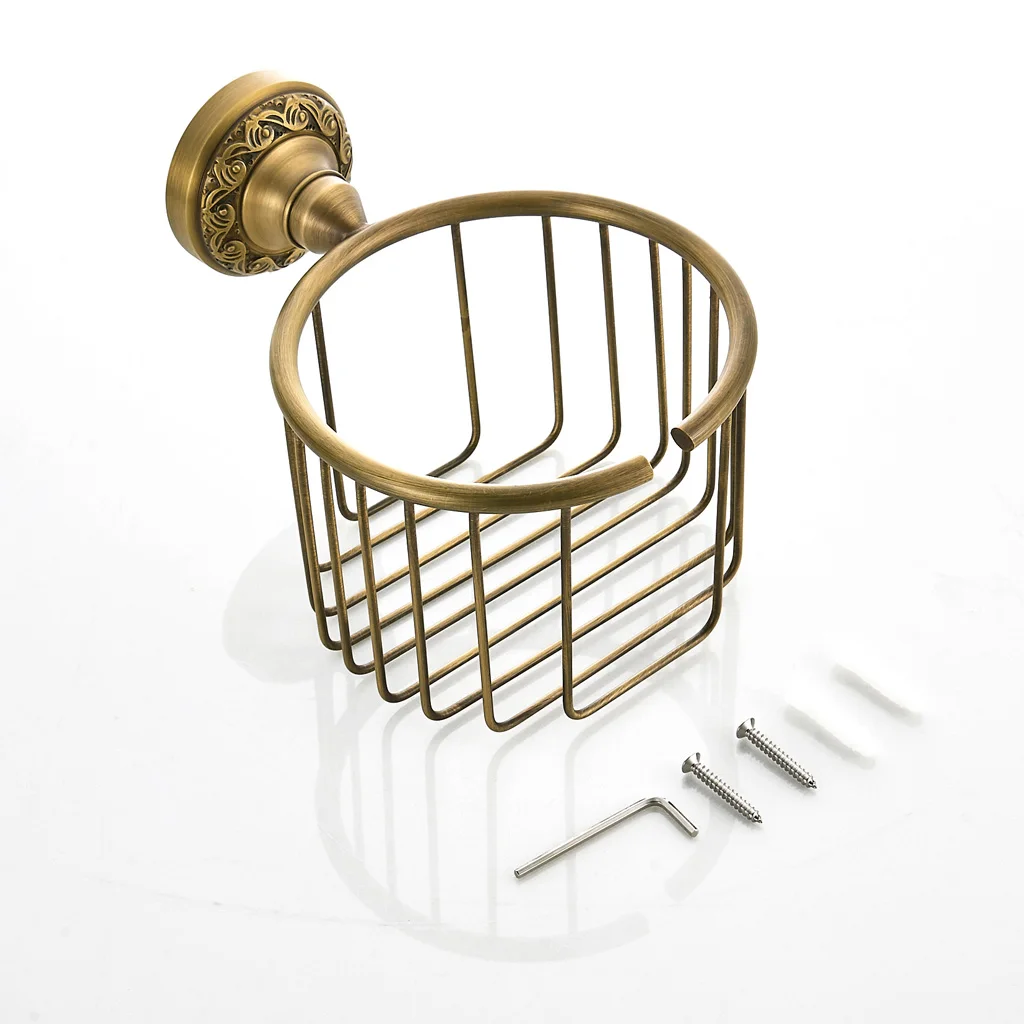 Bathroom Lavatory Solid Brass Toilet Tissue Paper Holder Paper Stand Tissue Paper Storage Basket