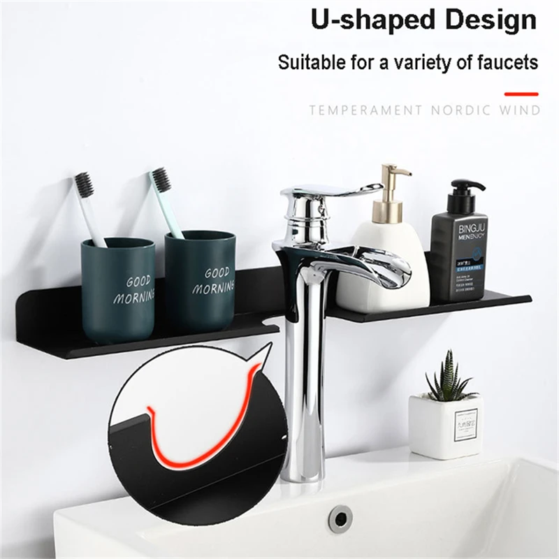U shape Nail-free Bathroom Shelf Toilet Storage Shelf Washstand Bathroom Organizer Wall Mount Washs