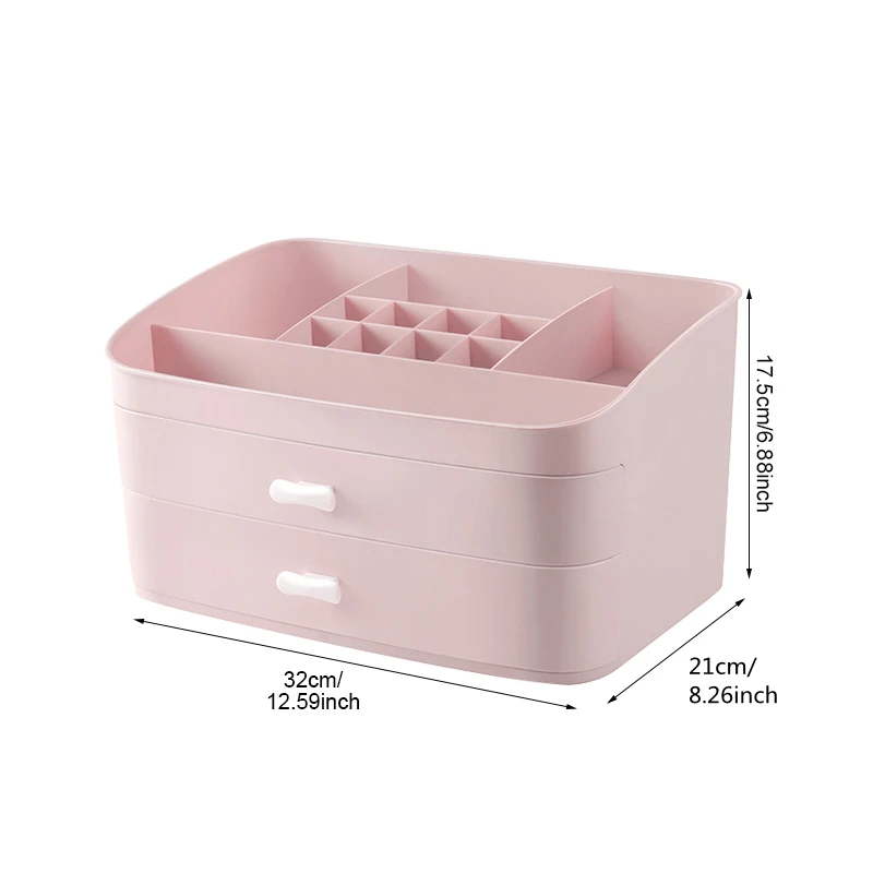 Plastic Makeup Organizers Cosmetic Jewelry Box Brush Lipstick Holder 2 Drawers Desk Storage Case Ba