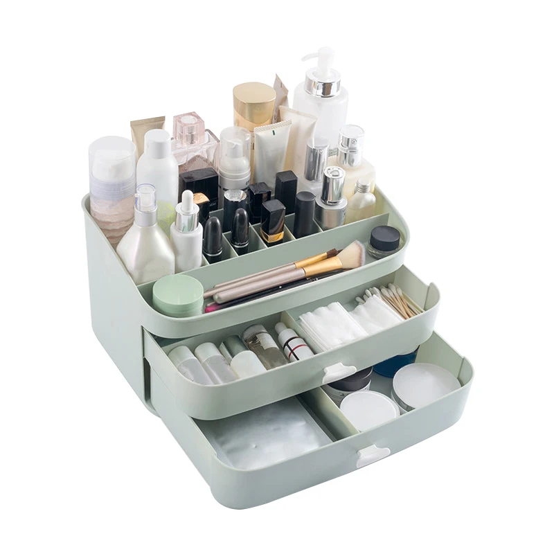 Best Seller Plastic Makeup Organizers Cosmetic Jewelry Box Brush Lipstick Holder 2 Drawers Desk Storage Case Ba