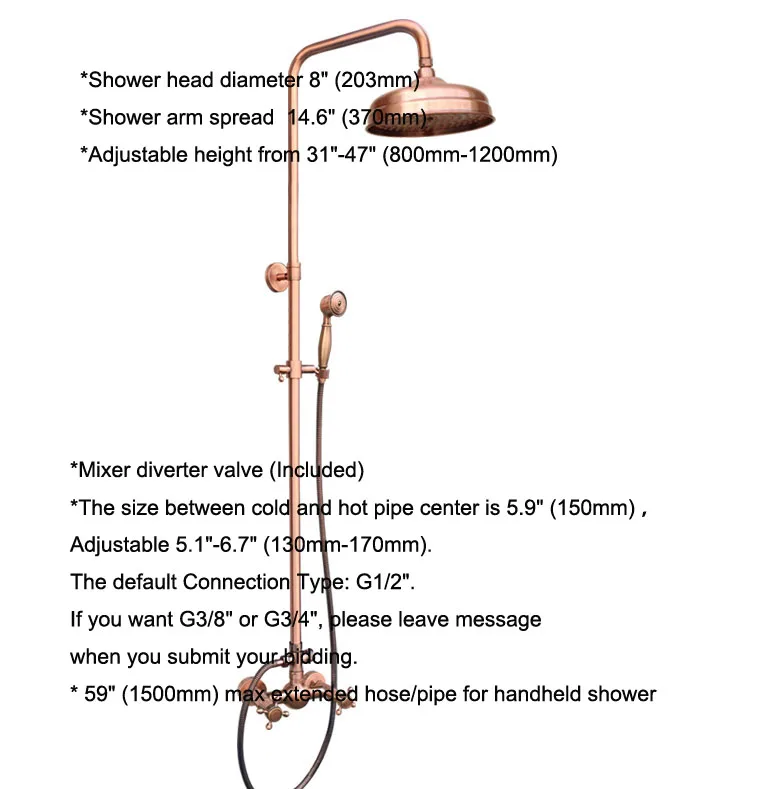 BEST Antique Red Copper Bathroom Shower Faucet Set Double Handle 8" Rainfall Shower System with Handshow